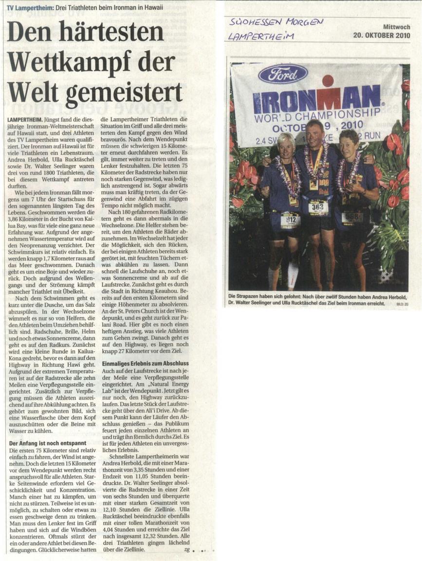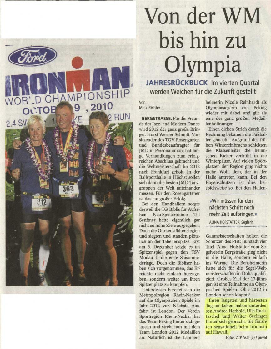 Die Leute auf Hawaii im Wechselbereich, in der Verpflegung einfach überall sind dermaßen freundlich und hilfsbereit. Es ist schon erstaunlich, wie man hier als Athlet behandelt wird. Auch im Zielbereich bekommt man von jedem Helfer und sonstigen Leuten gratuliert. Das kenne ich in Deutschland nicht. Man hört ständig „congratulations“. Man fühlt sich saugut dabei. Zuhause angekommen gibt es eine warme Dusche und die Welt ist wieder in Ordnung. Wenn meine Füße nicht so sehr wehtun würden, wäre mir gar nicht bewusst, dass ich gerade einen Ironman hinter mir habe.