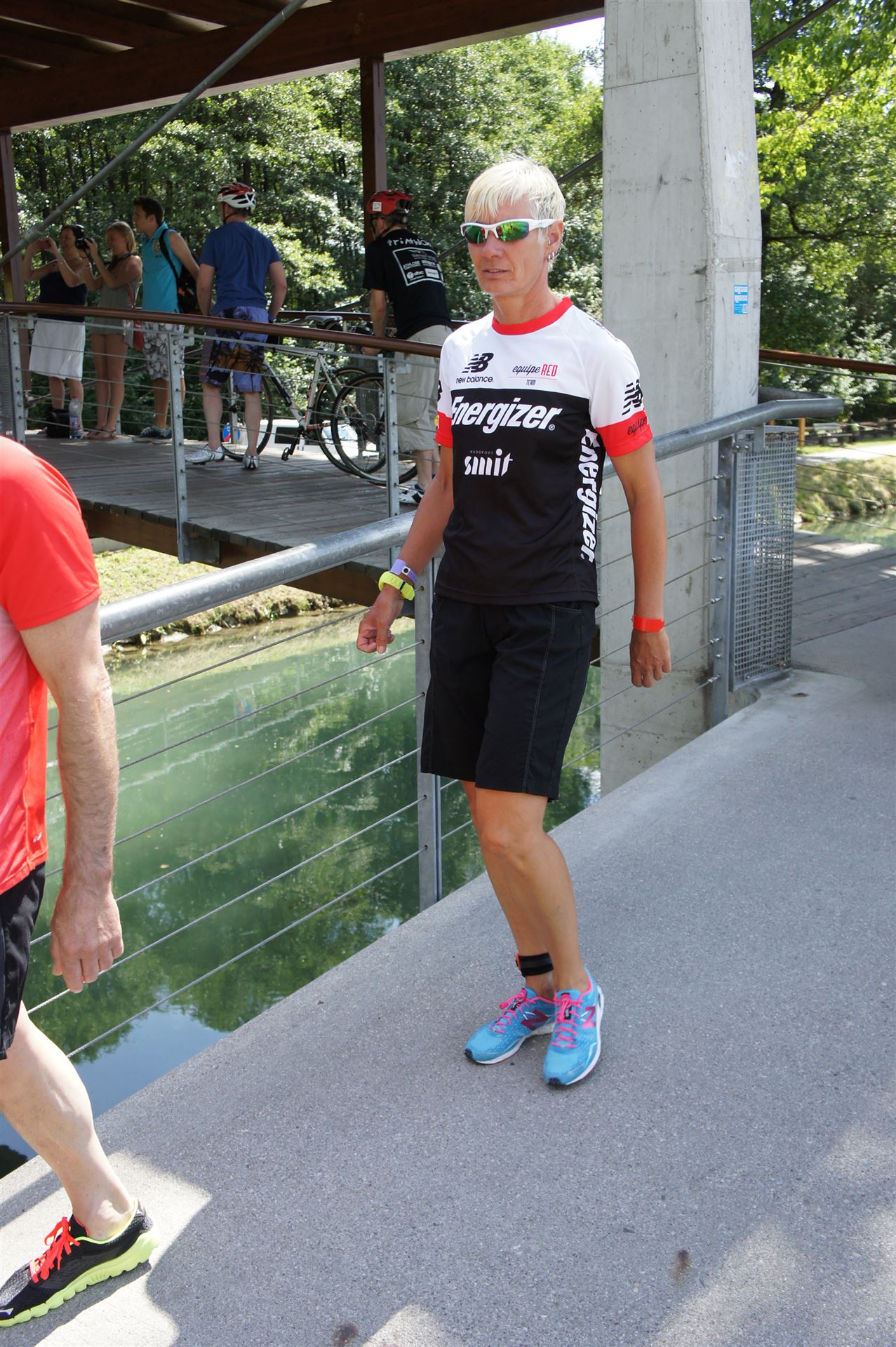 Das Wetter ist prima, die Temperatur liegt bei ca. 26 Grad im Schatten. Es werden 2 Runde á 21 km gelaufen. Von der Wechselzone geht es am Anfang entlang der Lende in Richtung Krumpendorf. In Krumpendorf läuft man eine kurze Strecke durchs Schwimmbad. Es ist schon etwas ungewöhnlich die Badegäste auf den Grünanlagen liegen zu sehen. Danach geht es entlang der Lende nach Klagenfurt Stadtmitte. Einmal um das Wahrzeichen, den Lindwurm herum und wieder zurück in Richtung Ziel. Die Strecke ist sehr abwechslungsreich, es stehen viele Freunde, Familie und Zuschauer an der Strecke. Aufgrund des Gegenverkehrs der anderen Läufer hat man immer etwas zu schauen. Das Anfeuern durch die Zuschauer puscht jeden Athleten. Die Schmerzen sind alle vergessen, man genießt die tolle Stimmung. Auf der 2. Runde habe ich leichte Probleme mit den Oberschenkeln und den Waden. Ich lasse mich davon jedoch nicht beirren, einfach nur weiterlaufen. Die Unterführung nach Klagenfurt sowie die Bordsteinkanten in der Stadtmitte bereiten mir etwas Probleme, aber egal, da macht man einfach etwas langsam.