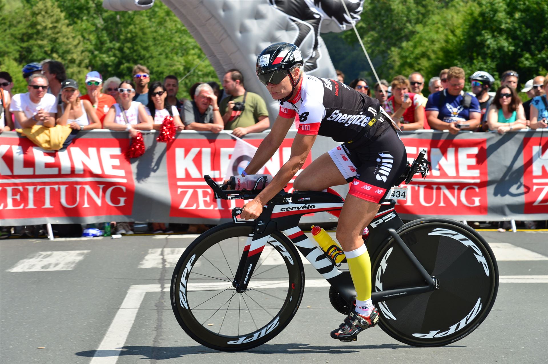 Auch hier gibt es viele Fans an der Strecke. Der DJ feuert mich mit der Bemerkung "Ironlady" an, ich kurble den Berg hoch.