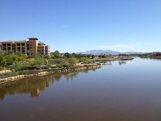 Wie immer war die Nacht bereits um 5:00 Uhr vorbei, diese Zeitumstellung ist einfach grausam. Um 7.00 Uhr bin ich noch eine kleine Runde mit meinem Rad gefahren. Da es an diesem Morgen die Möglichkeit gab, im See zu schwimmen war bereits ein reges Treiben bei uns am Hotel. Ich habe mir das Schwimmen gespart, das Wasser ist sehr trübe. Es reicht mir, wenn ich dieses Wasser im Wettkampf ertragen muss. Nach dem Rad noch eine kurze Runde Laufen, das war's. Nach dem Frühstück sind wir alle in die 2. Wechselzone nach Henderson gefahren, die Laufbeutel mussten noch abgegeben werden. Nochmals kurz über die Messe gelaufen und wieder zurück zum Hotel. Am Nachmittag gebe ich noch das Bike ab.