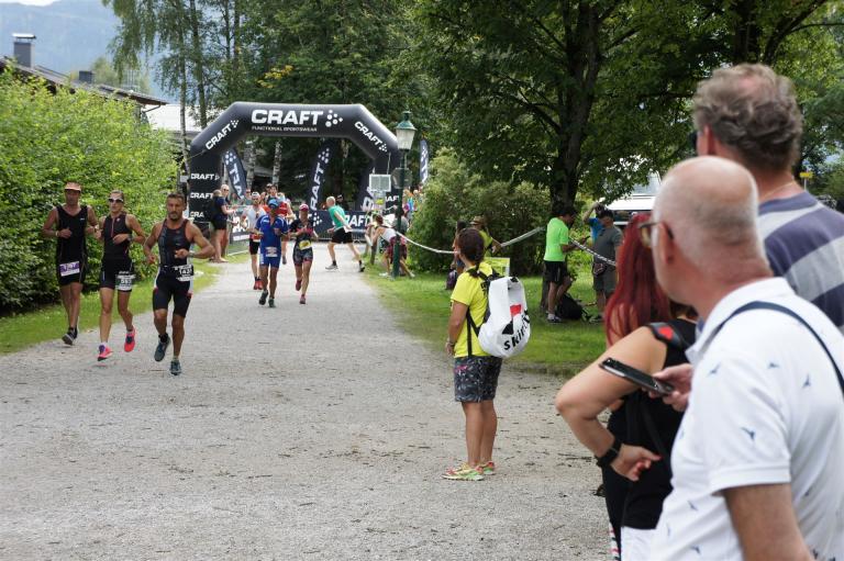 Die ersten 2-3 Kilometer fallen mir sehr schwer. Die Beine sind müde und ich kann mein Tempo nicht finden, was sehr ungewöhnlich für mich ist. Normalerweise habe ich keine Anlaufprobleme nach dem Rad. Meinem Rücken geht es sehr gut, daran kann es nicht liegen. Nachdem ich eine Runde durch die Stadt gelaufen bin und die Zuschauer mich angefeuert und motiviert haben geht es mir langsam besser. Mein Kopf ist positiv und die nächsten 18 Kilometer können kommen. Die Strecke führt am See entlang, ein tolles Panorama. Die Strecke ist teilweise Asphalt aber auch viel Schotter. Man gewöhnt sich irgendwann an den Schotter, die Zuschauer und die tolle Strecken helfen dabei. Gesamt werden 2 Runden mit einigen hoch-tief Passagen gelaufen. Das Ziel ist direkt in der Stadt. Die Finisherline ist voll, man wird angefeuert, es wird gejubelt, eine ganz tolle Stimmung. Für den Halbmarathon habe ich eine Zeit von 1:53:04 benötigt.