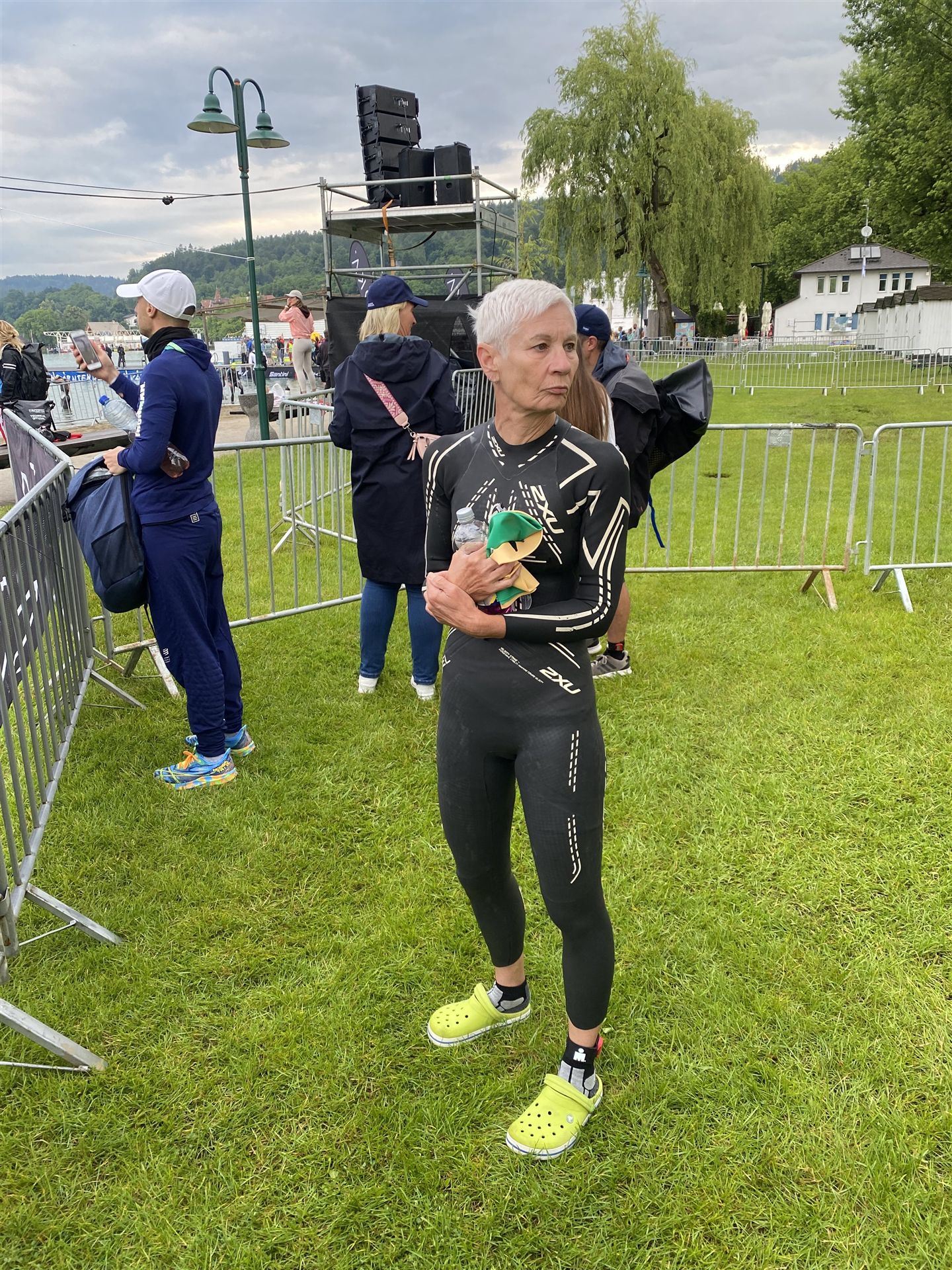 Normalerweise mache ich gerne vor der ersten Langdistanz eine Mitteldistanz um meine Form zu prüfen. In diesem Fall stand am 16.06.2024 direkt eine Langdistanz in Österreich an. Der IM in Klagenfurt ist ein sehr schöner Wettkampf, an dem ich bereits mehrmals teilgenommen habe. Die Wettervorhersage für den Wettkampftag war durchwachsen. Ich mag gerne warme Temperaturen, je wärmer desto besser. In diesem Fall lag die Vorhersage bei circa 22-23 Grad Lufttemperatur mit etwas Regen. Die Wassertemperatur lag ebenfalls bei knapp 20 Grad, keine Bedingungen, die ich gerne mag. Aber egal, das Leben ist kein Wunschkonzert und das Wetter kann man nicht beeinflussen. Die Nacht vor dem Wettkampf ist immer etwas kurz, man schläft auch etwas unruhig. Bereits um 3:30 Uhr war ich wach und bin auch direkt aufgestanden. Für den Wettkampf habe ich bereits alles gerichtet. Die Wechselzone öffnet am Wettkampftag um 5:00 Uhr, ich bin pünktlich da und pumpe noch einmal meine Reifen auf und fülle Getränke und Gel auf. Während der ganzen Zeit regnet es, es kann nur noch besser werden. Erstaunlicherweise nimmt man solche Dinge am Wettkampftag einfach hin, man hat keinen Einfluss.