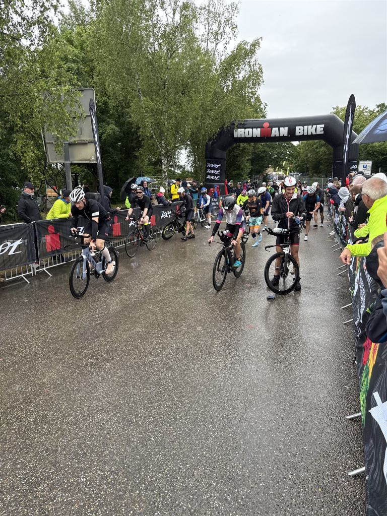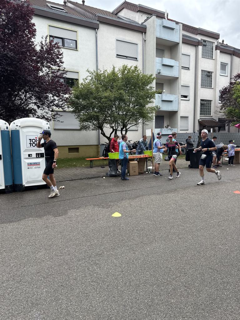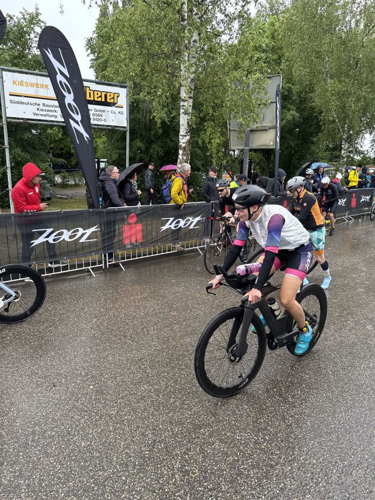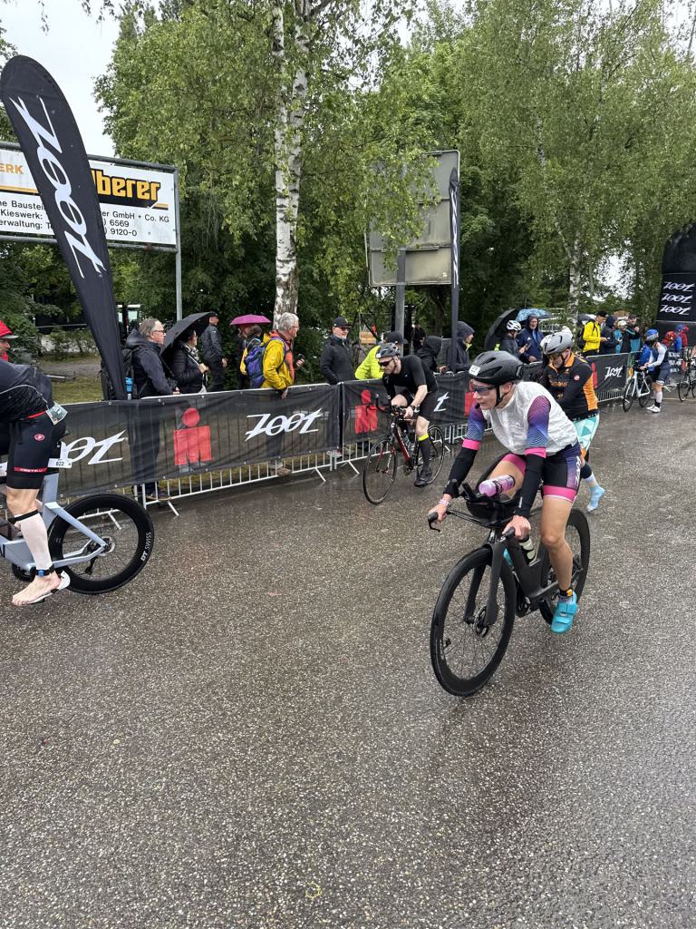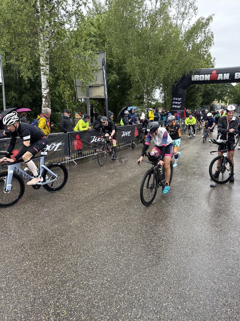 Rein in die Wechselzone und Rad aufpumpen sowie Getränke und Verpflegung am Rad anbringen.