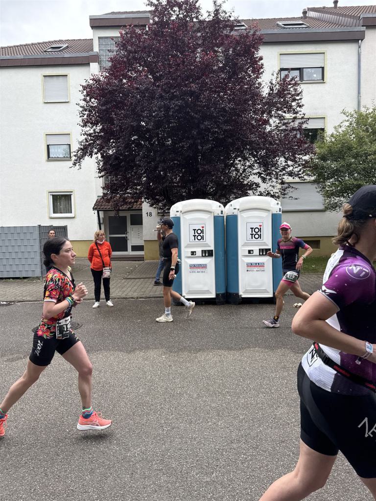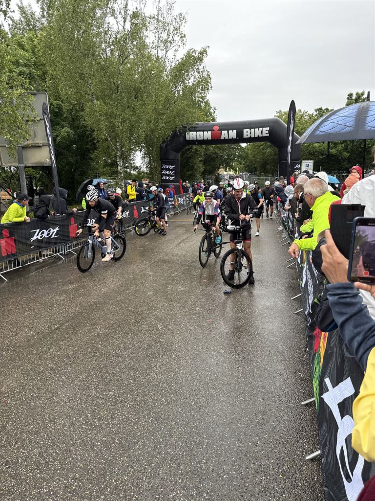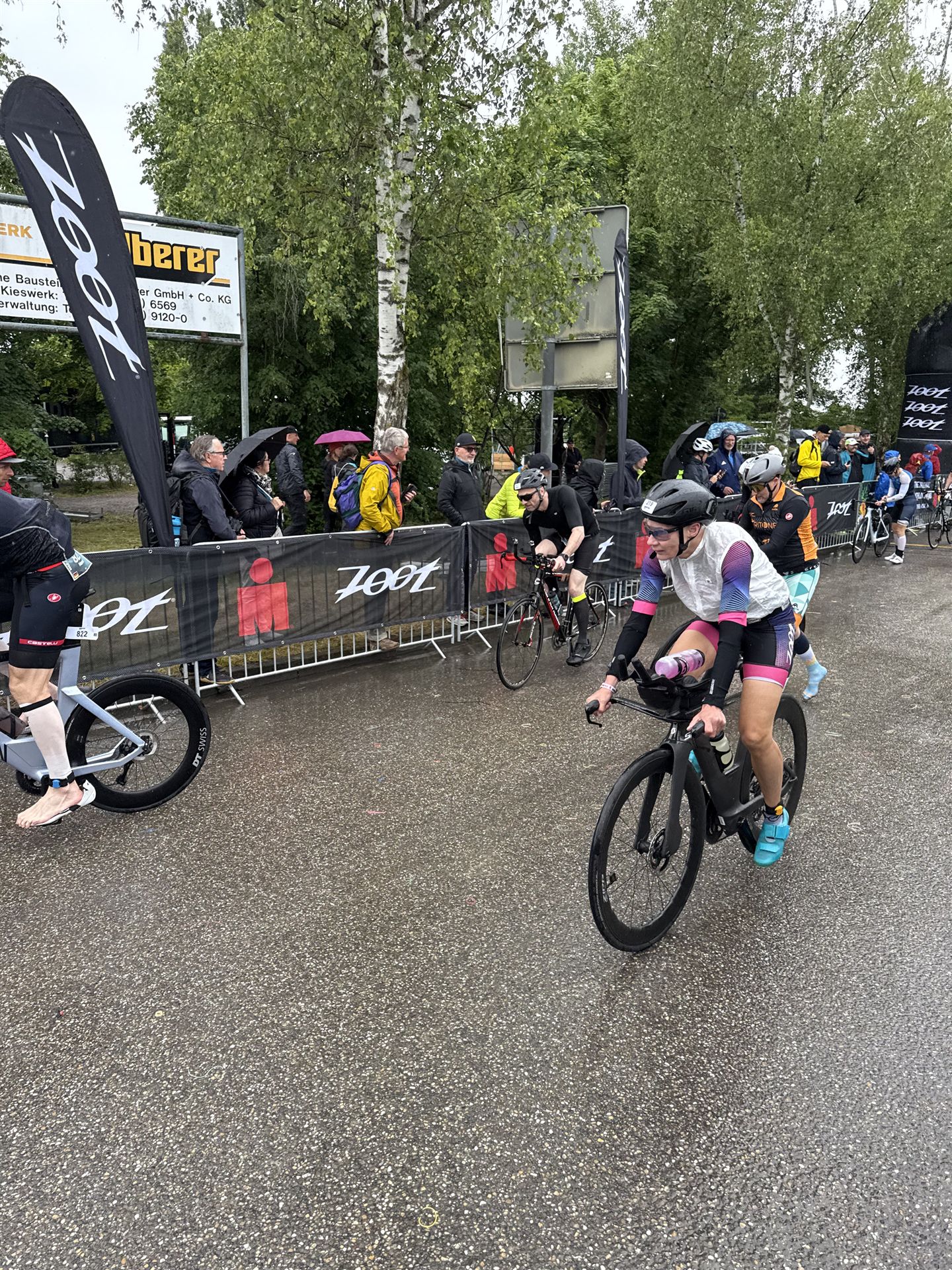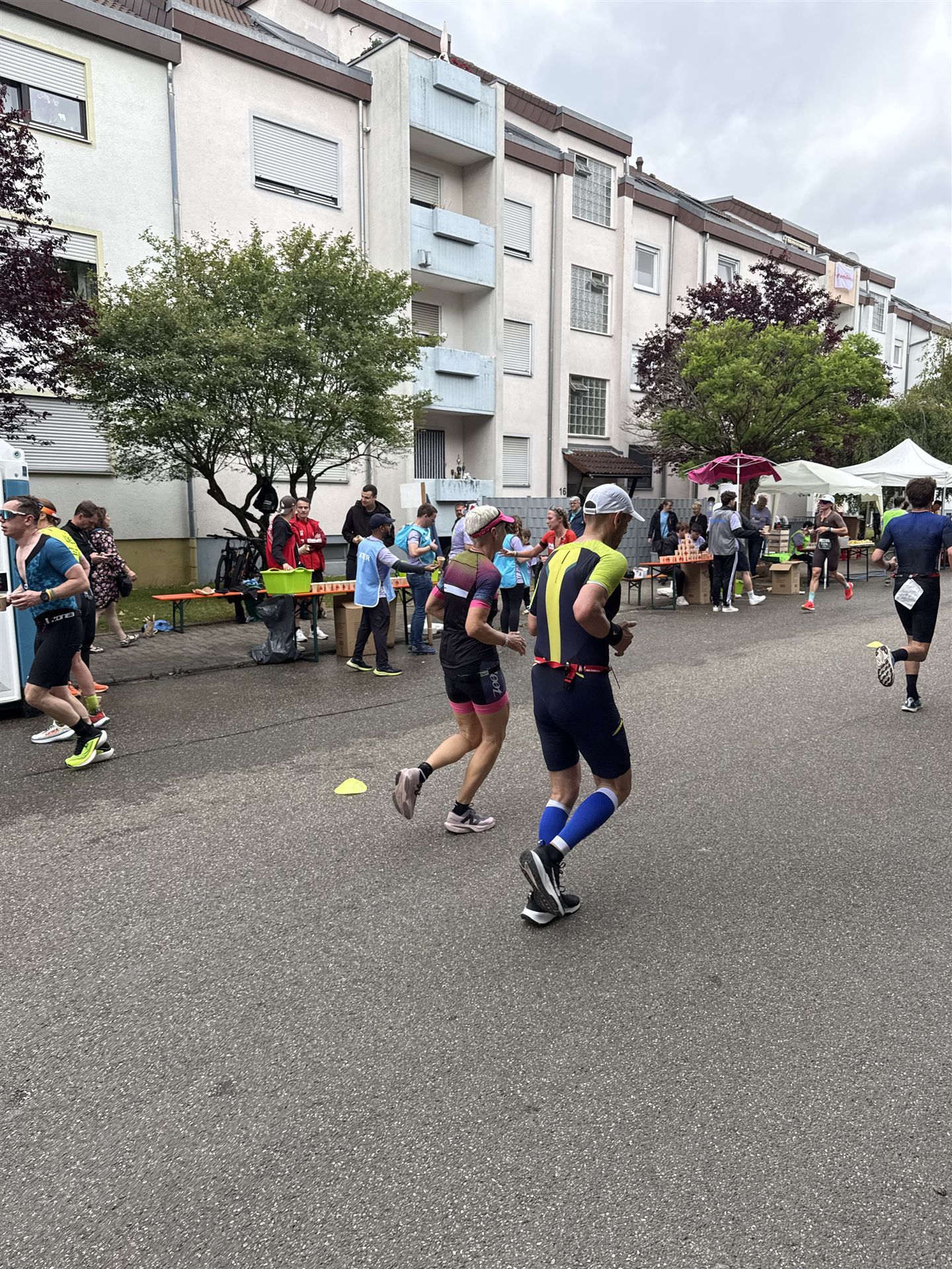 Rein in die Wechselzone und Rad aufpumpen sowie Getränke und Verpflegung am Rad anbringen.