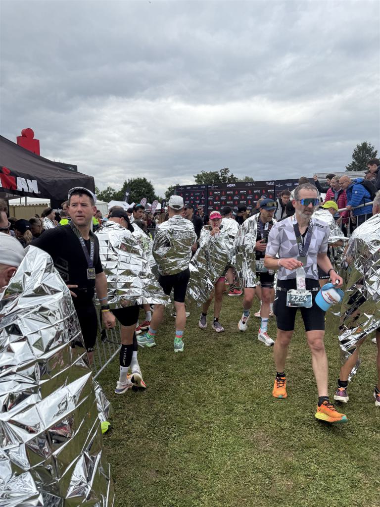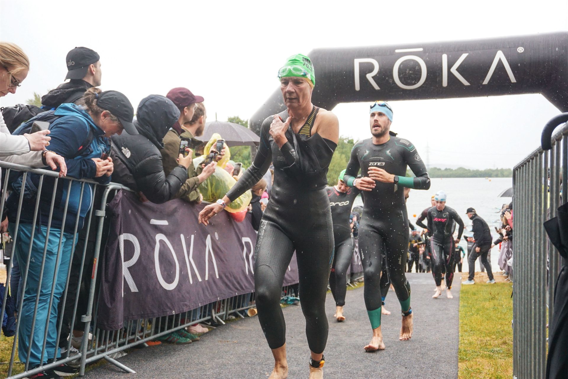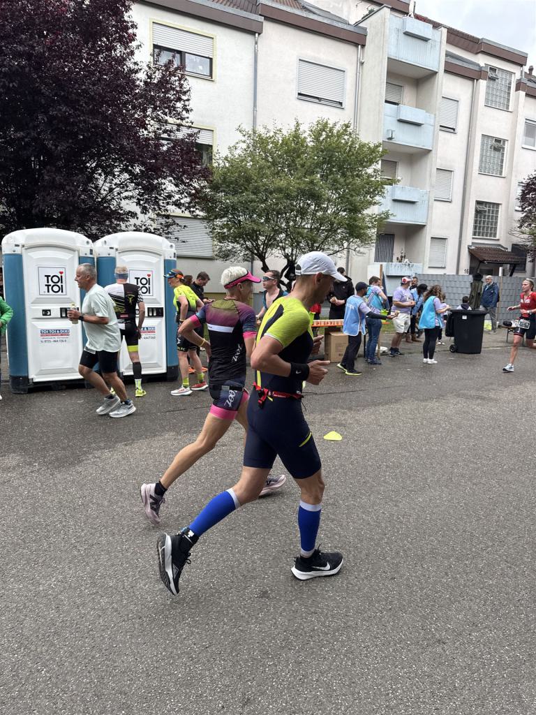 Nach 40:07 Min. komme ich aus dem Wasser und laufe in die Wechselzone T1.
